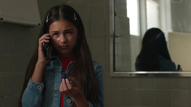 Vada er ei 16 år gammel jente og skoleelev som forlater klasserommet fordi hun må på do. På vei gjennom korridoren guider hun via mobiltelefonen en emosjonell lillesøster gjennom sin første menstruasjon, før hun inne på toalettrommet veksler blikk med ei pen, men perifer klassevenninne – Mia – som sminker seg foran speilet. Det er en vanlig skoledag. Men så smeller det. Lyden av knallharde skudd som det ikke er mulig å ta feil av. Vada og Mia vet hva som skjer, og låser seg i desperasjon inn bak døra til en av toalettbåsene. Flere smell og påfølgende skrik høres. Plutselig kommer en gutt stormende inn døra, delvis dekket av blod han forteller er fra broren sin.