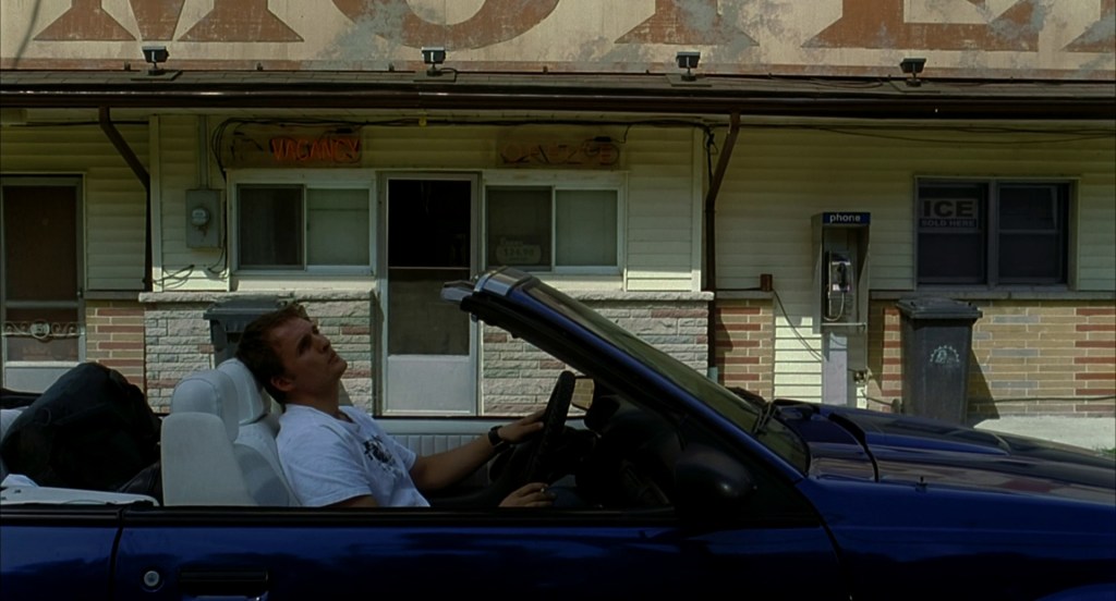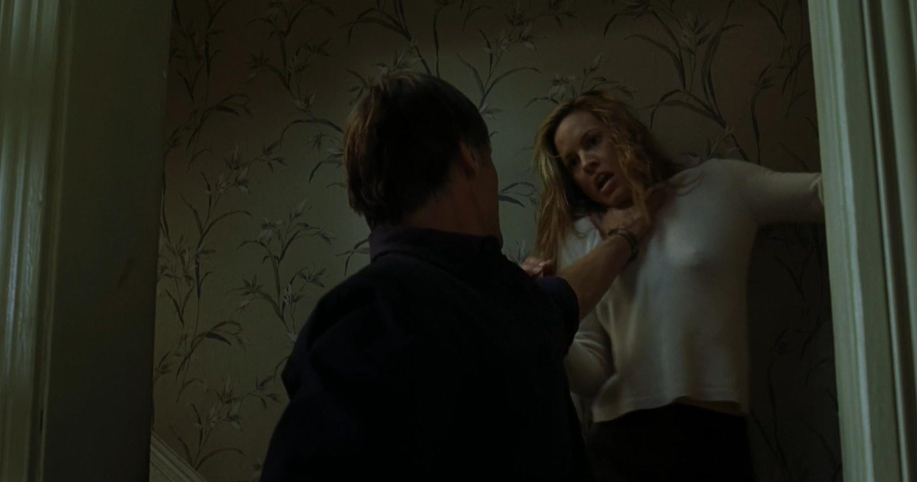 Allerede i åpningsscenen – som i seg selv er en tidlig demonstrasjon på Cronenbergs evne til å være rystende, presis og kalkulert både i substans og filmspråk – blir vi kjent med trusselen som snart skal konfrontere også Tom Stall. Med statisk innstilling, stillhet og saktegående bevegelser fanger kamera opp to kjeltringer på vei ut av et motell et sted langs landeveien. De har nettopp, på brutalt vis, tatt livet av innehaveren og en vaskehjelp, og når én av kjeltringene går tilbake for å hente litt vann så oppdager han en liten jente som livredd har gjemt seg på badet. Med et smell blir hun også skutt. Og vi forstår at det er ingenting vakkert å bli presentert for i «A History of Violence», og at vi skal langt vekk og inn i skyggesidene av samfunn og menneskesinn.