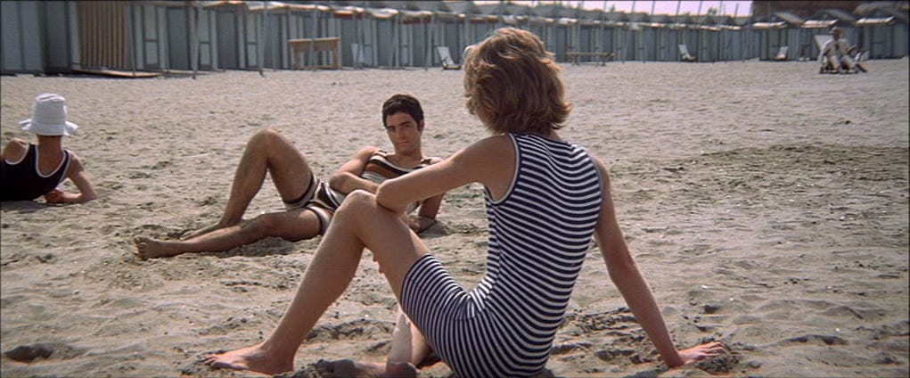 En annen dimensjon ved «Døden i Venedig» er aldring. Dirk Bogarde er den aldrende komponisten Gustav von Aschenbach som ikke kan slippe øynene av den altfor unge gutten, Tadzio, som ferierer ved samme hotell sammen med sin polske familie. Gutten spilles av svenske Björn Andrésen, etter at Visconti selv reiste på turné i store deler av norden og Øst-Europa for å finne den perfekte blåøyde, lyse gutten som han umulig kunne finne på italiensk jord. Om Andrésen uttalte Visconti at han hadde funnet «verdens vakreste gutt», og han iscenesettes og spilles som en androgyn skikkelse uten personlighet, men som kun er der for Aschenbach og kameraets blikk som et objekt av ung og ytre skjønnhet. På veien fra Manns bok til Viscontis film har protagonisten blitt komponist fra å være forfatter, men er fremdeles en aldrende kunstner som kommer til Venezia i søken etter åndelig og fysisk næring, men som må innse at oppholdet blir en eksistensiell erkjennelse av alderdommens reelle natur, der alt han ønsker er blitt uoppnåelig utover å bivåne fra avstand.
