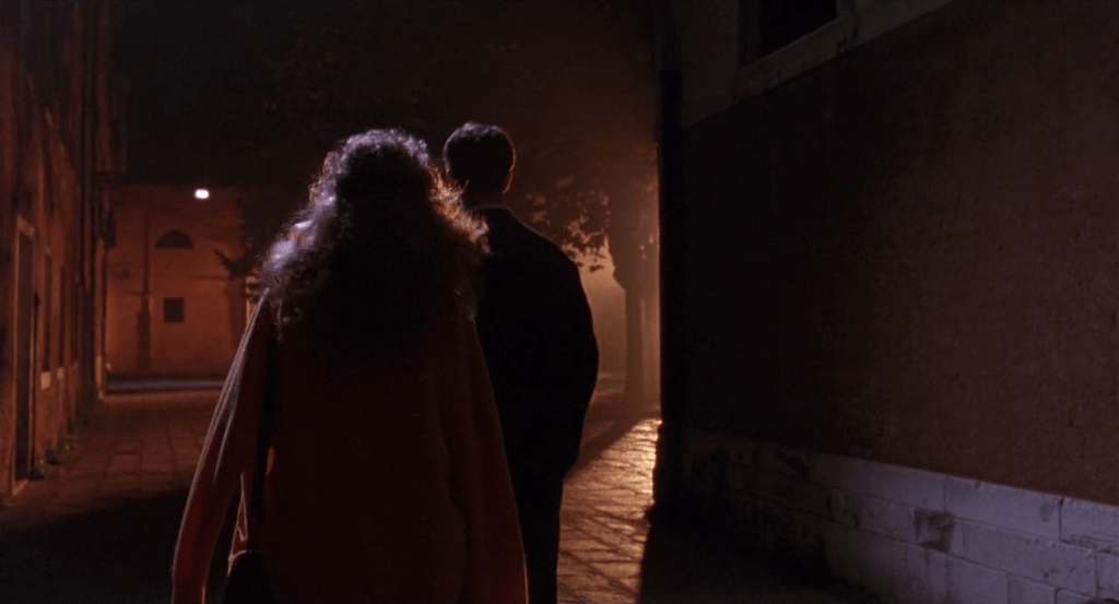 Vi møter det ugifte paret Colin og Mary (Rupert Everett og Natasha Richardson) som har reist til Venezia på ferie. Det kommer frem at de har vært der før også, for noen år siden, men det kommer ikke helt klart frem verken hvorfor de har reist tilbake eller hvor de er i forholdet. Det vi umiddelbart ser, og som filmen gradvis skal bli mer opptatt av å understreke, er at det er to vakre mennesker – i en vakker by. Men bak skjønnheten i forholdets fasade, er det litt rusk i dynamikken mellom de to. Er de selvopptatte, overfladiske og ikke egentlig til stede i hverandres liv? Eller treffer vi dem først bare på et tidspunkt de er slitne og desorienterte på reise i en by som er fremmed for dem, selv om de har vært der før? Har det rett og slett reist på denne ferien i et forsøk på å reparere et forhold fra havari? I så fall er det et utgangspunkt som styrker assosiasjonene til Nicolas Roegs 1973-kunst-horror-mesterverk i «Don’t Look Now», der et annet britisk par nettopp ankommer den italienske kanalbyen Venezia for at byens skjønnhet skal kunne lege noen dypere sår i dem. For begge tilfeller blir det et skjebnebestemt møte med et sted, men for alt annet enn det tilsiktede.