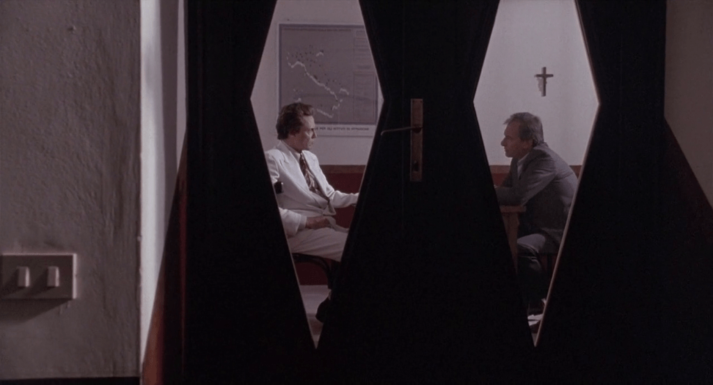 Her tar historiefortellingen den sentrale vendingen i det øyeblikket Colin og Mary treffer på en fremmed mann, den mystiske og aristokratiske Robert (Christopher Walken), ikledd en hvit Armani-dress. Første gang de møter ham, er de intetanende om at han først har vært veldig klar over dem – på avstand og med fotokamera. Det er en innsikt Schrader allerede har gitt oss, men uten mer kontekst, og det skaper en nysgjerrighet ledsaget av uro på hovedkarakterenes vegne når veiene deres på et tidspunkt møtes i Venezias trange gatesmug. Den hvitkledde Robert dukker først beleilig opp for dem i den labyrintiske byen når Colin og Mary har gått seg vill (også rent metaforisk). Han tilbyr seg å vise dem vei, og inviterer dem samtidig inn til en lokal restaurant han eier. Der får de ikke servert mat, men til gjengjeld store mengder vin og ikke minst en lang og underlig historiefortelling som Robert serverer dem som svar på det enkle spørsmålet om hvordan han møtte sin kone.