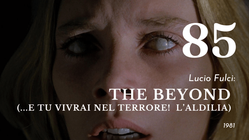 Det er mulig å snakke «The Beyond» inn blant de store italienske skrekkfilmene. Lucio Fulcis 1981-verk bader i blod, men også marerittlignende bilder som skriker på oppmerksomheten vår. Særlig er første halvdel stikkende gal, altså før filmen blir til en zombie-fest for øyet, men «The Beyond» er verken i begynnelsen eller slutten veldig opptatt av logikk. Snarere er Fulci grenseløst besatt av å brette frem fengslende skrekkbilder som drypper av blod helt frem til alt eksploderer. Når spesialeffektene fortsatt holder stand og Fulcis stilgrep tåler tidens tann, ser det heldigvis fortsatt ganske så storartet ut.