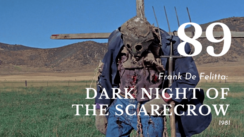 Larry Drake, mest kjent for «L.A. Law», spiller en tilbakestående karakter i slutten av 30-årene som har et slags vennskap med et jentebarn på et lite sted i tykkeste Amerika. Drake leverer muligens et portrett som bikker mot komisk effekt, og som etterlater en viss bismak, men uten at det blir problematisk når det plasseres i en film som tviholder på sitt særegne, merkverdige toneleie. Det kommer særlig til syne allerede i åpningen som setter premisset; en besynderlig, men effektiv iscenesettelse, der jentebarnet blir angrepet av en hund og Bubbie forsøker å redde henne. Omgivelsene leser imidlertid hendelsen annerledes, og Bubba får gjennomgå når lynsjestemningen i landsbyen eskalerer. Historiefortellingen føles hele tiden konstruert og derfor også forutsigbar og omstendelig. Samtidig skapes det et rom som på fordelaktig vis gjerne prioriterer stemningsskapende tablåer fremfor billigkjøpte skvetteøyeblikk, og det kunstneriske (eventuelt økonomisk motiverte) valget med å unnlate blod og grusomheter på skjermen, men trekke kamera unna, virker til det bedre. Flere scener holdes det likevel for lenge i, og filmen føles lenger enn den er – på godt og vondt. «Dark Night of the Scarecrow» er kanskje lenge forutsigbar, men har et bevegelsestempo og prioriteringer underveis som skiller den tydelig fra samtidige og sammenlignbare slasherproduksjoner, helt frem til en overraskende tilfredsstillende slutt.