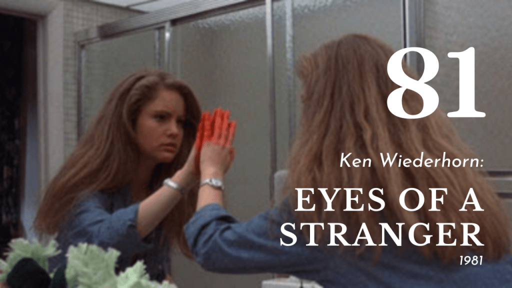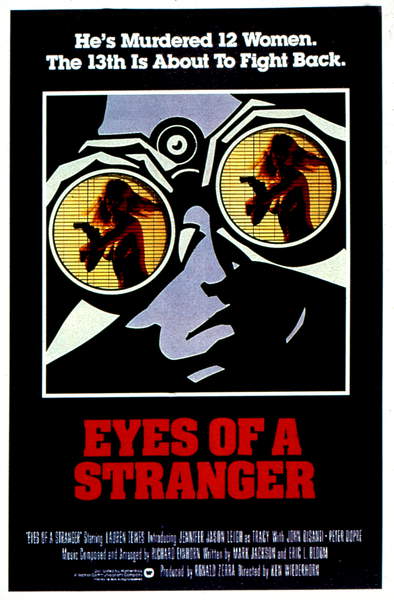 «Eyes of a Stranger» hopper inn i et ekstremt fengslende thrillerspor når den kvinnelige nyhetsjournalisten starter sin egen etterforskning basert på en ubehagelig følelse av at en av naboene i boligkomplekset kan være den ettersøkte seriemorderen. «Eyes of a Stranger» er en frekk og særdeles forlokkende psykopat-horror/thriller som er like effektivt fortalt som den er direkte slibrig presentert. Regissør Ken Wiederhorn manøvrer filmen i grenseland mellom et klassisk thrillerlandskap og blodsprutende slasher-terreng, dog uten at spenningen er fundamentert i et whodunnit-spørsmål, eller alene i blodrike iscenesettelser av drap. Drapsmannen gjøres kjent umiddelbart, og selv om drapshandlingene er gjenstand for en slags fetisjering der effekt-guruen Tom Savini har briljert i kulissene, er det selve filmføringen som gir tenning til filmens stemnings- og spenningsskapende metthet.