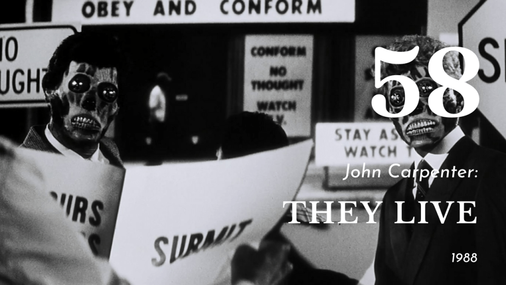 John Carpenters video-klassiker «They Live» er et filmatisk anti-konsumeristisk samfunnsangrep fordekt som lavbudsjetts science fiction-thriller. Gjennom et par spesialsolbriller oppdages en verden som er helt ulik den virkeligheten vi vanligvis ser rundt oss. Mennesker ses som aliens, og all media skjuler kalkulerte budskap for å hjernevaske befolkningen. Filmens tematikk er minst like aktuell i dag som da den ble produsert, og dens kvaliteter nesten like tidløs. Den lite selvhøytidelige tonen og lavbudsjettsplattformen bekreftes gjennom valget om å bruke den profesjonelle wrestling-stjernen Roddy Piper i hovedrollen (en rolle som også hadde vært skreddersydd for Arnold Schwarzenegger), og den labre skuespillerprestasjonen blir derfor ikke noe stort irritasjonsmoment.
