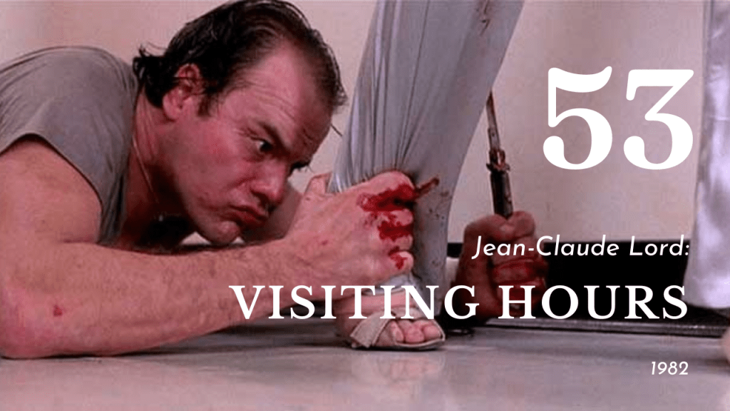 Første halvdel av «Visiting Hours» føles som skinnende gull; fra synthmusikken til stilsikre iscenesettelser og ikke minst til Michael Ironsides fryktinngytende psykopat-portrett i hovedrollen som kvinnehatende massemorder. Ironside er så dominerende gjennom hele filmen at det vipper i retning av det ikoniske, men bak denne maktdemonstrasjonen så evner ikke filmskaper Jean-Claude Lord alltid å opprettholde samme grad av suspense gjennom hele filmen som i første del. Ironside ble for øvrig castet til denne på bakgrunn av prestasjonen i David Cronenbergs tidlige «Scanners», som en annen kanadisk lavbudsjettsskrekkfilm av samme produsenter som står bak denne. Dette er likevel en film som føles å ha uendelig holdbarhet (om forventningene er justert riktig: dette er en velgjort kabel-tv-nattfilm). Aller mest for hva Michael Ironside tilfører, men også fordi den – og uten å være veldig opptatt av verken kvinnelig nakenhet eller blod (som slasherfilmer gjerne er) – faktisk har flere virkelig skremmende og effektive enkeltscener skapt av et utsøkt filmisk blikk.