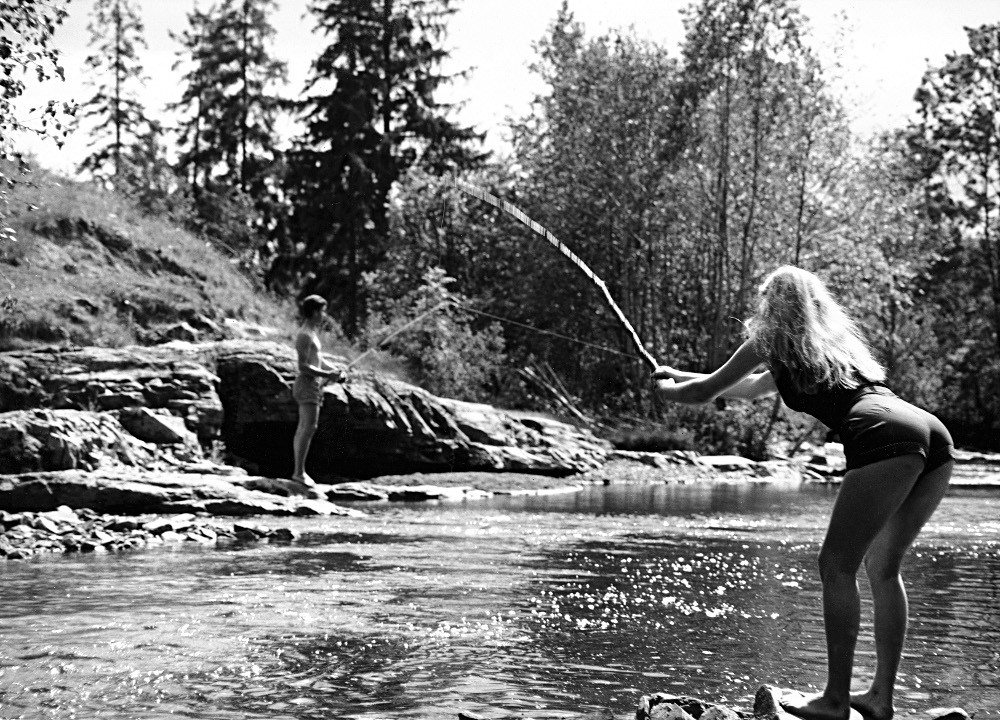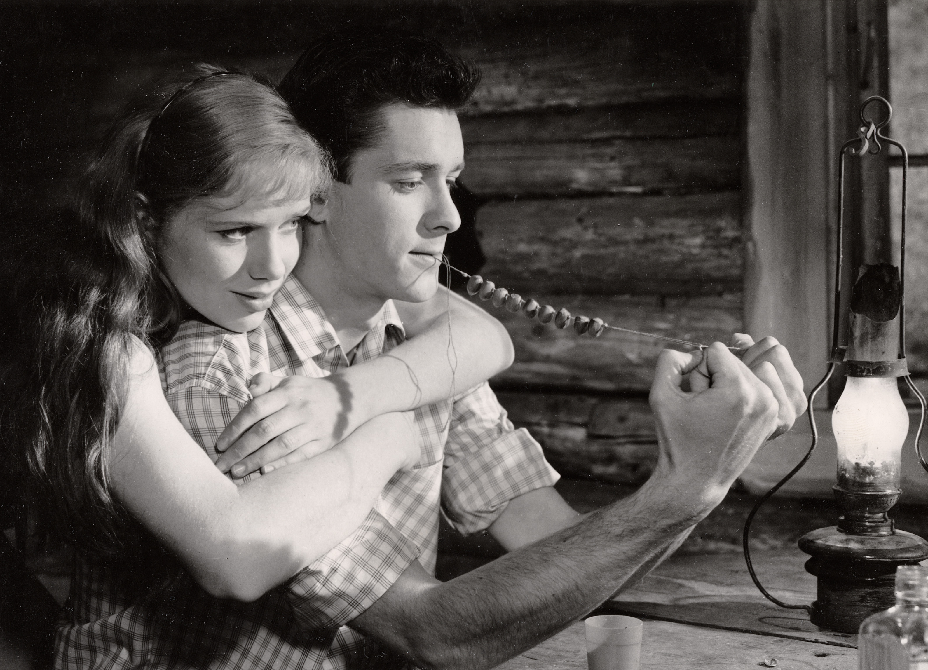 Det er lett å småhumre til «Ung flukt», men heldigvis oftest når det er intendert og sjeldent eller aldri fordi vi serveres scener som overhodet ikke har tålt tidens tann. Som når faren og sønnen setter seg ned for å sløye fisk for ikke å måtte se på hverandre når de nærmer seg en samtale om faktiske følelser, relasjoner og seksualitet (en prat som fra hans side typisk begrenser seg til «hvis du blir nødt til å gifte deg med henne…»). Konfrontasjonen er mer direkte mellom Gerd og moren, selv om foreldregenerasjonens trang til å beholde en slags fasade blir tydelig på tvers av familiene. Men mer enn å være en skildring av kommunikasjon mellom foreldre og tenåringsbarn, er «Ung flukt» mest en historie om kommunikasjon mellom tenåringene alene, og derigjennom om identitet, frihetsfølelse og ung seksualitet. Dette foregår før foreldrenes innblanding, og etterpå – særlig etter at dynamikken påvirkes idet en annen ung (men også litt eldre enn dem) mann står i døråpningen samtidig som Gerd og Anders, i en av filmens beste scener, er i ferd med å slakte en sau. Det er en scene der vi opplever at Gerd blir oppildnet av å se akademiker-kjæresten slakte et dyr, samtidig som hun smiler enda mer med øynene idet hun kaster det lystne blikket på den nyankomne, litt eldre og mye mer erfarne mannen. Trekantdramaet åpner og eskalerer dramaet, og herfra blir ikke lenger forholdet mellom Anders og Gerd det samme.