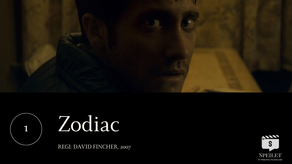 «Zodiac» er det destillerte David Fincher-verket. En sober skildring av besettelse klemt inn i et seriemorder-portrett som både er stramt og langtrukkent fortalt. Formidlingen er presis og elegant i fortellerteknikk og formspråk for å gi oss den nervepirrende, absorberende og intense filmopplevelsen som «Zodiac» gir. Som en veldig sentral aktør i det hele finner vi naturligvis Jake Gyllenhaal.