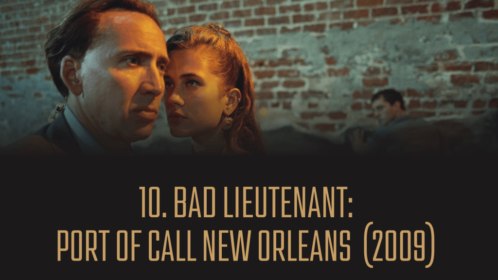 Jeg husker fremdeles det svidde litt i øynene da jeg første gang leste nyheten om at Werner Herzog skulle regissere en remake av Abel Ferrara-mesterverket «Bad Lieutenant» med Nicolas Cage i hovedrollen. Jøss, det hørtes merkelig ut – og jammen ble det merkelig, men også veldig bra! Nesten like fantastisk som Harvey Keitels traktering av den miserable politimannen i Ferraras bekmørke 1993-portrett, skrur Herzog opp alle tilløp til absurditeter til uimotståelig effekt i et kunstnerisk samarbeid med Cage som definitivt er med på hva Herzog vil. Cage er her på sitt aller mest karismatiske, og det er som Herzog – med sin erfaring i å håndtere eller portrettere galskap – fyller den nødvendige kraften og kompetansen til at det akkurat holder seg innenfor (som regissører av kommende Cage-filmer ikke hadde).
