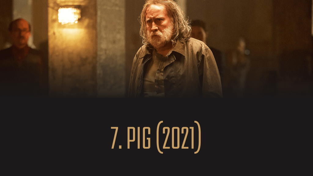 Særlig fra 2010-tallet tok gjerne Nicolas Cages karriere en vending mot tilsynelatende mindre ambisiøse produksjoner samtidig som kunstneriske samarbeid med relevante eller betydelige filmskapere opphørte. I fravær av velsmidde storproduksjoner eller begavede regissører med blikk og evne til å utnytte Cages talent i «kvalitetsfilmer», ble karrieren hans på et tidspunkt mer omgjort til en vits. Men enkelte unntak finnes, og det beste og ferskeste fra nyere tid er rollen som einstøing og trøffelgriseier i Michael Sarnoskis oppsiktsvekkende sterke regidebut «Pig». Her inntar han et uvanlig behersket spill innenfor rammene av å representere et slags utskudd av samfunnet, skrevet og spilt i en retning man kunne sett for seg Joaquin Phoenix portrettere til Oscar-nominasjon. Cage er på samme nivå, i en mektig levert tolkning av en person bærende på en uhåndterlig mengde sorg, men uttrykt med sjelfullhet og handlekraft som gjør ham fengslende å studere kontinuerlig i enhver uttrykt nyanse. På et tidspunkt serverer han også en fenomenal enkeltscene med en monolog som avkler og dissekerer det pretensiøse matuniversets fasiliteter, presentert med dirrende perfeksjonert filmkraft i en herlig og bitende film på nitti minutter.