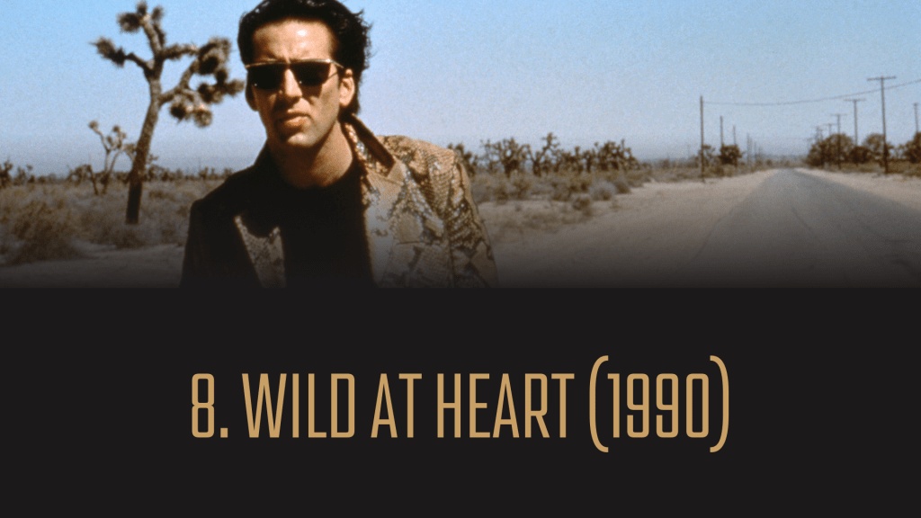 David Lynch og Nicolas Cage er en kombinasjon vi gjerne kunne sett mer av. I «Wild at Heart» skapes et særegent, voldelig univers av tegneserieaktige dimensjoner som Lynch ivrer etter å utforske med et fantasirikt filmarbeid og idérikdom av plott og iscenesettelser. I denne konteksten er Cages tilstedeværelse mildt sagt ikke malplassert i en underlig kjærlighetshistorie langs veien mot en minst like praktfull Laura Dern. Rollen som Sailor har mange av karaktertrekkene vi liker å forbinde med Cage på film med en fargerik og intens kraft. Både Cage, Dern og hele «Wild at Heart» er forunderlig tiltrekkende, absurd, frekk og gjennomsyret av lidenskap. Om den ikke ble noen stor publikumssuksess der og da, kan ingen ta fra «Wild at Heart» statusen som vinner av Palme d’Or eller evig status som kultklassiker.