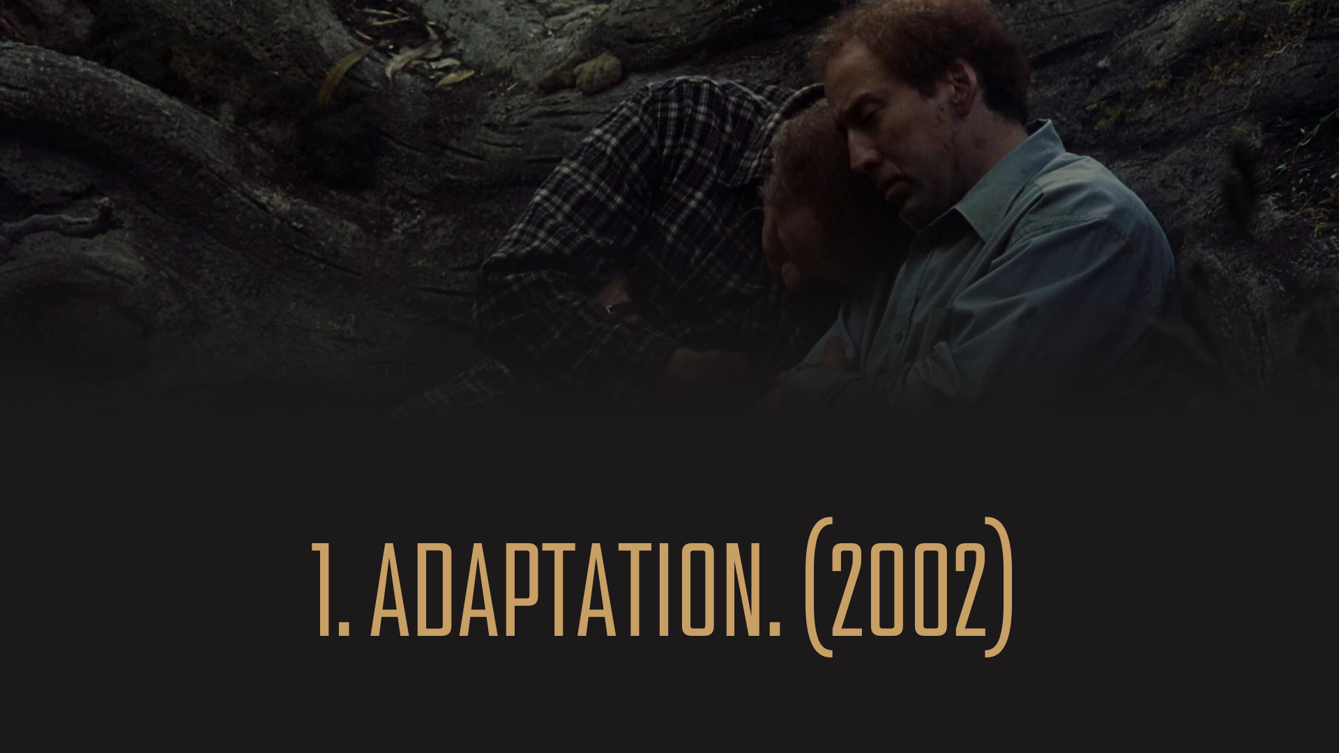I Spike Jonzes genierklærte meta-komedie spiller Nicolas Cage filmens virkelige manusforfatter, Charlie Kaufman, som i «Adaptation.» blir ansatt for å skrive et filmmanus av en bok samtidig som han kjemper mot sterke indre krefter av angst, sosial fobi, depresjon og synkende selvtillit. I tillegg spiller Cage manusforfatteres tvillingbror som også er manusforfatter. Det svimlende originale premisset følges opp av en ekstraordinær gjennomføring i hvordan filmen fortelles og uttrykkes, og ikke desto mindre i den monumentale rolletolkningen som tilhører Nicolas Cage i det som må være det aller mest krevende, og derfor imponerende, han har gjort.