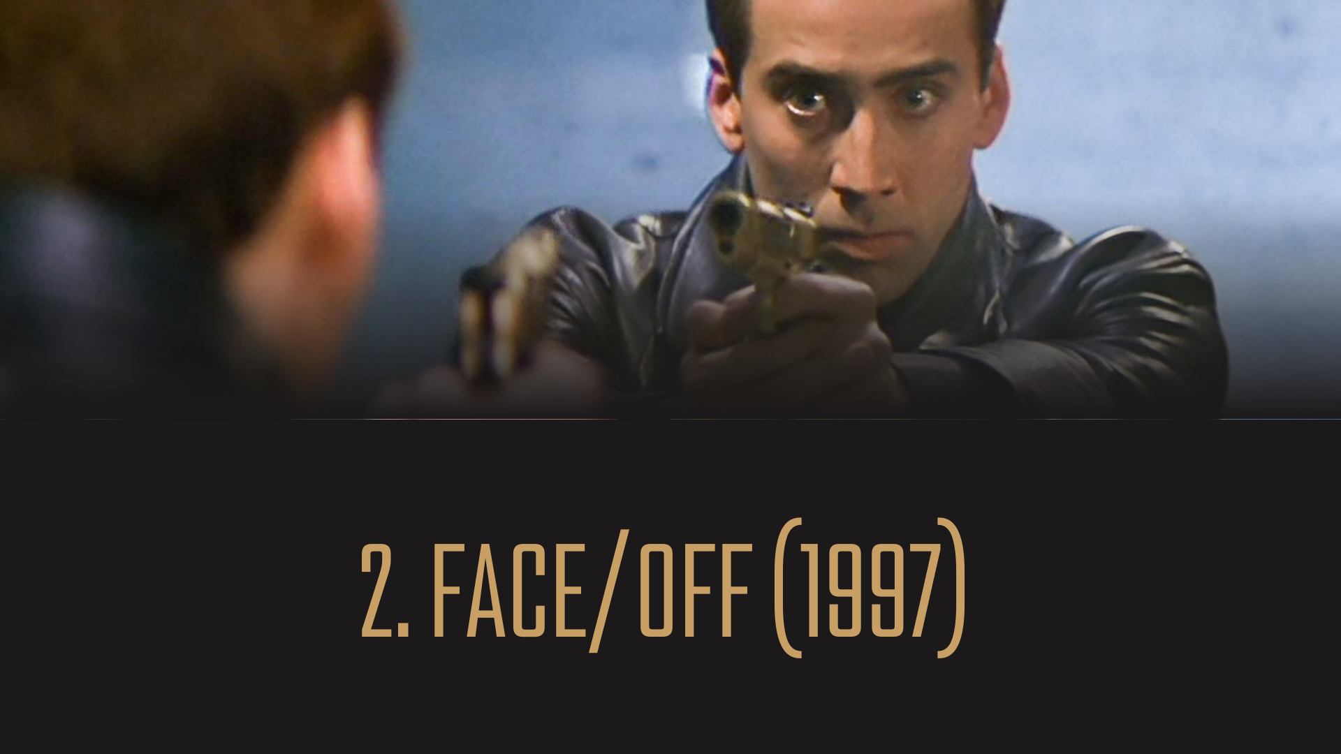 «Face/Off» er John Woos magnum opus. Det er en film som på 90-tallet smeltet estetiserende og overdreven Hong Kong-action inn i en stjernespekket Hollywood-blockbuster med John Travolta og Nicolas Cage på høyden av karrieren. Og det er helt fantastisk. Det er en spinnvill idé av en konseptuell plottidé, der John Travolta er FBI-agenten som opplever å se sin eneste sønn bli skutt og drept av terroristen Castor Troy, spilt av Nicolas Cage. Galskapen spruter her av Cages spinnville opptreden som den karismatisk-ondsinnede terroristen, hvor det er lett å tenke at det er fullstendig match mellom Cages distinkte skuespillerstil eller persona, og John Woos operatiske dramatiseringer som hentet av en tradisjon der alle mulige følelser skal skrus opp og vises på lerretet. Når Travolta og Cage er samtidig i bildet, er det to stjerner som typisk er større enn hva de tar del i. Samtidig kniver de ikke bare om oppmerksomheten med hverandre, men like mye med hva som foregår rundt dem ettersom Woos stilfulle filmarbeid er minst like mye show off som Cage og Travoltas ekstravagante rollefigurer. Øynene tåler knapt mer enn de får se i «Face/Off», inkludert fra Cage.