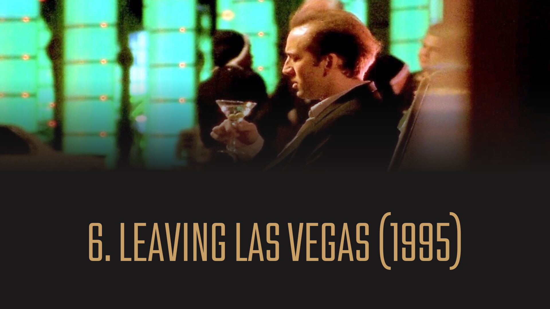 Nicolas Cage har (foreløpig) vunnet én Oscar, og det var for «Leaving Las Vegas» han vant gullstatuetten i kamp med Sean Penn for «Dead Man Walking». Det er en rolletolkning som føles å være av de mest omtalte, men kanskje også omdiskuterte, fra 90-tallet. Cage spiller en alkoholiker som havner i Las Vegas der han planlegger å drikke seg i hjel, inntil han møter og forelsker seg i en vakker call girl. Det er en film av et voldsomt og grafisk uttrykk, men med en underlig blanding av å være dempet og nøktern (ofte i nydelig samspill med Elisabeth Shue). Mye av det samme finnes i Cages svettende, temperamentsfulle og ukontrollerte (men likevel kontrollerte!) håndtering av alkoholisme som trekkes mot yttergrenser der mange vil tenke at det blir for mye. Filmen står som et dokument på Cages vilje til å forsvinne fullstendig følelsesmessig og fysisk inn i en rolle på sin måte, men der særegenhetene han legger igjen like mye blir en del av figuren som han som skuespiller. Cages vei inn i «Leaving Las Vegas» og hva som er kommet ut av det, slår meg som en av de mest massive kunstneriske prosjektene utført av en amerikansk skuespiller i sitt tiår.