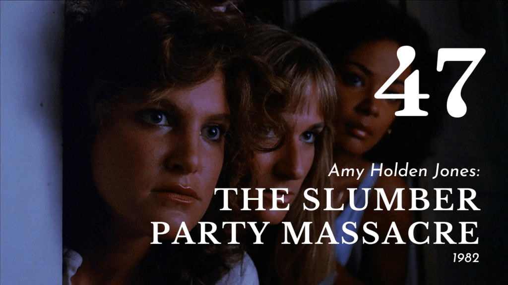 «The Slumber Party Massacre» er et deilig stykke renskåret amerikansk slasher. Filmen, som interessant nok er regissert av en kvinne (Amy Holden Jones), og som derfor også er blitt gjenstand for en ekstra feministisk tolkning, leverer upretensiøst det den skal, og som publikum forventer: Karakterintroduksjonen gjøres med en lang dusjscene som dveler med de nakne jentekroppene, forventningene til en planlagt ungdomsfest (i dette tilfellet tenåringsjenter som er hjemme alene og skal ha pysjamasfest), en drapsfigur som lurer i buskene, og den gradvise, blodige nedslaktingen av ofrene. Alt er på plass, og det fungerer urovekkende bra.
