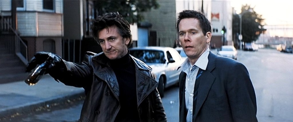 Historien er grunnleggende et klassisk kriminaldrama. Et drap på datteren til Jimmy som inntreffer samme natt som Dave kommer hjem dekket av blod, og Sean som er politietterforskeren med ansvar for å finne frem til sannheten. Da må tråder trekkes frem og tilbake mellom den felles vonde fortiden og vanskelige nåtiden, i noe som unektelig kan fremstå som et veldig konstruert plott for en intrikat krimbok. Da jeg så filmen på kino i 2003 husker jeg også noen forbehold som blandet seg med begeistringen over det intense og oppslukende dramaet. Jeg tror nettopp at den veldig tenkte konstruksjonen, sammen med filmens noe svulmende patos og overtydelighet, slukket noe av filmens flamme i meg. Samtidig tror jeg kanskje at jeg allerede da likte filmen enda mer enn jeg ville innrømme, og med gjensyn kan jeg slå fast at «Mystic River» endelig falt ordentlig på plass for meg — som et amerikansk storverk av sin tid, i sin sjanger og form.