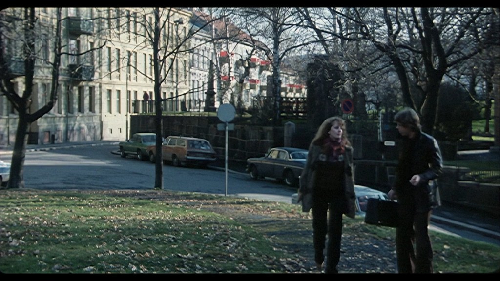 Det første som slår meg med «Nedtur», er at filmen er tidvis godt skrevet – gjerne med en litt giftig, bitter og morsom tone. Helge Jordal er seg selv lik, kanskje noe overspillende, men han er godt egnet til å bekle rollen som den uansvarlige, forvokste gutten som er Christian. Mer interessant er likevel Nils Sletta som kameraten Nils, som gjemmer seg bak ølglass og saksofon, og i hvert fall ikke ønsker å forplikte seg til noe i livet. Derfor blir heller ikke relasjonen han får med Elin langvarig. Sletta er god på en mer underspilt måte, mens Sigrid Huun virker å være på samme reise som den hun påbegynte som hasjrøykende ungdom i ikoniske «Himmel og helvete» for Øyvind Vennerød i 1969, denne gang som etablert rusmisbruker i «Nedtur». Men rollen hennes fyller også en avgjørende funksjon som endrer dynamikken også mellom Christian og Nils. Det er hun som stiller spørsmålene de ikke selv har turt å stille om egne liv. For Nils blir hun en viktig samtalepartner (Huun ble i virkeligheten selv etter hvert psykiater), men enhver tanke om ansvarlighet skyver snarere Nils unna. Kanskje fordi han på nært hold har sett Christians håndtering på hjemmebane. For Christans del blir det en vei inn i uttalt depresjon. Ikke bare for hva som skjer i eget liv, men hva han ser i livene og skjebnene rundt seg.