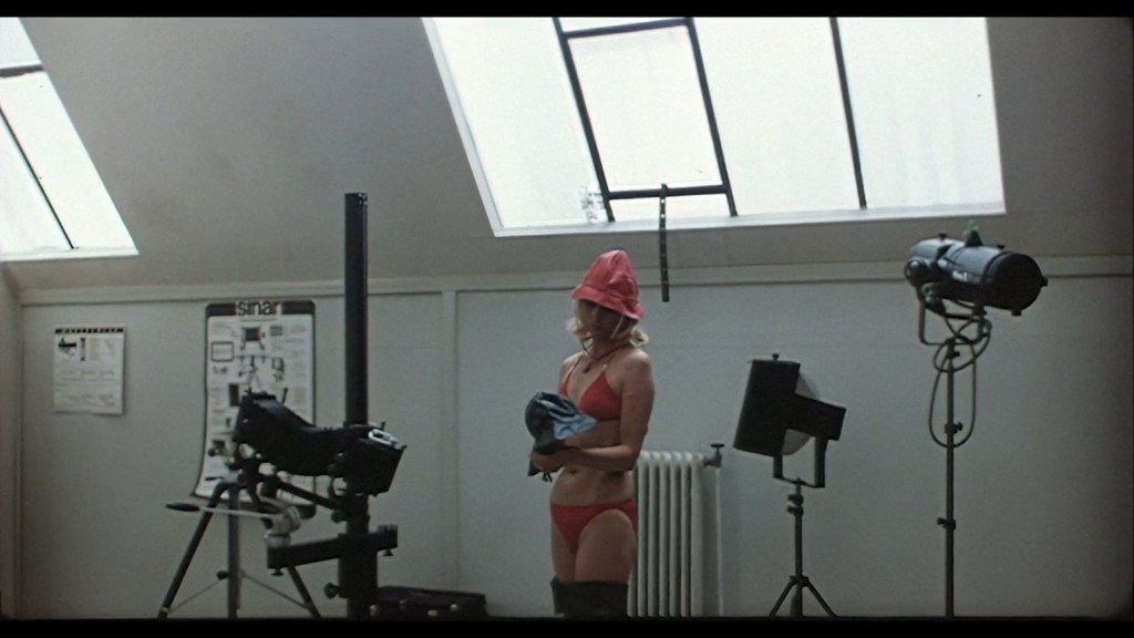 Åpningsscenen: Anne Marit Jacobsen og Anne Marie Ottersen er i et lydstudio der de instrueres av en røykende og animert/opphisset Øyvind Blunck som ber dem spille inn erotiske lyder og dialog av typen «Ååå!» og «Nå går det snart for meg!». I kulissene står Helge Jordal og Nils Sletta, som viser seg å være filmens egentlige hovedpersoner, hvor Jordal – som spiller fotografen Christian – i den påfølgende scenen forklarer at Bluncks slibrige figur jobber som journalist for et blad med «hår på brøstet», og at han fikk låne studioet til et sideprosjekt. Om ikke annet, er det en morsom begynnelse, like før nedturen – derav tittelen – kommer.