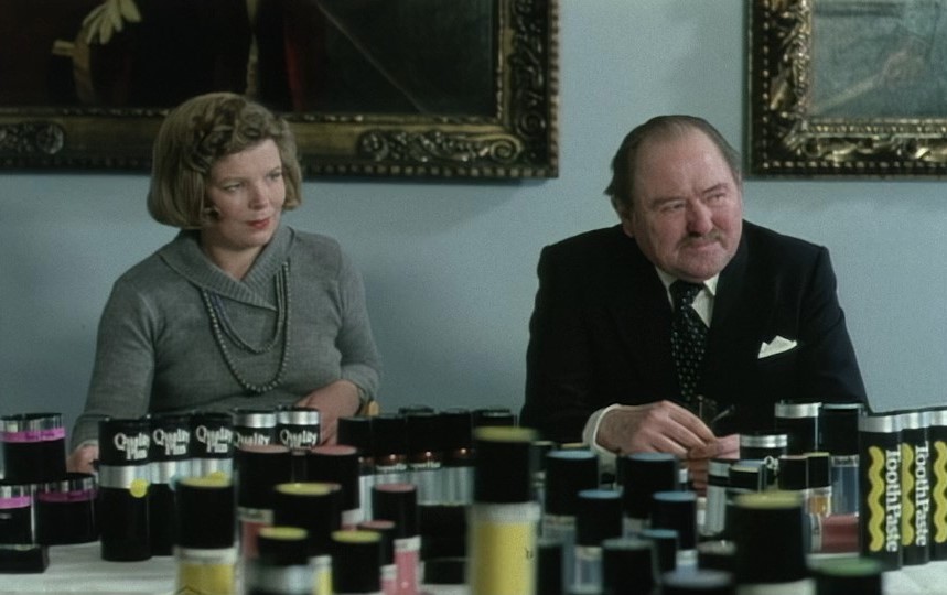 Overdrivelsene sitter løst, men karikaturene som tegnes i begynnelsen av «Kosmetikkrevolusjonen» er kanskje også det aller mest fornøyelige og elegante med hele filmen. I en tidlig scene ser vi Lucy Ferner i et stort privat basseng med rosa fliser rundt, mens den nakne kroppen hennes bare delvis er tildekket av såpeskum, før hun blir tørket av sin assistent som for anledningen er fullstendig hvitkledd i Lars Andreas Larssens fantastiske skikkelse. I den påfølgende scenen ser vi Lucy Ferner og bedriftseieren Olsen møtes for første gang – han med vannkjemmet hår, røyk i munnviken og sitt joviale vesen skrudd opp til 11 av 10. På gebrokken engelsk aksepterer han de elleville betingelsene i avtalen som Lucy Ferner presenterer muntlig, uten at han virker å forstå rekkevidden av noe som helst, foruten hennes slående tiltalende vesen og en følelse av det han kan tjene mye penger.