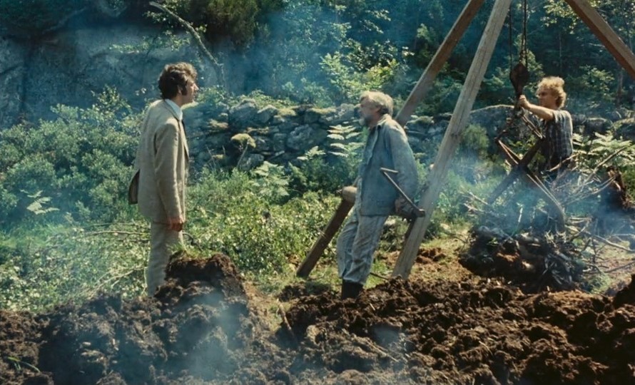 Selv om «Kimen» var debuten til Erik Solbakken som spillefilmregissør, hadde han altså varmet opp både som erfaren kortfilmskaper og som co-regissør på nevnte Vesaas-filmatisering «Brannen». Sistnevnte, et prosjekt som kom vesentlig senere i Vesaas’ karriere, var et tematisk mørklagt drama særpreget av en underlig tone som strakk seg mot surrealismen. I «Kimen» ligger virkeligheten tettere på den ytre handlingen. Vi møter en ung mann som ankommer en øy. Han virker forvirret eller desillusjonert bak en pent kledd fasade i møte med den frodige naturen på øya. I dress og slips beveger han seg i land fra båt til øy. Er han på flukt fra noen, eller kanskje bare fra seg selv? Via tilbakeblikk aner vi at han har vært utsatt for et traume, og at han er i sannsynlig psykisk ubalanse. Samtidig kryssklippes hans ankomst til øya med nærbilder av grisefødsel som et rituale dit han har kommet, og vi forstår tidlig at «Kimen» også er en film som vil søke seg mot symboler.