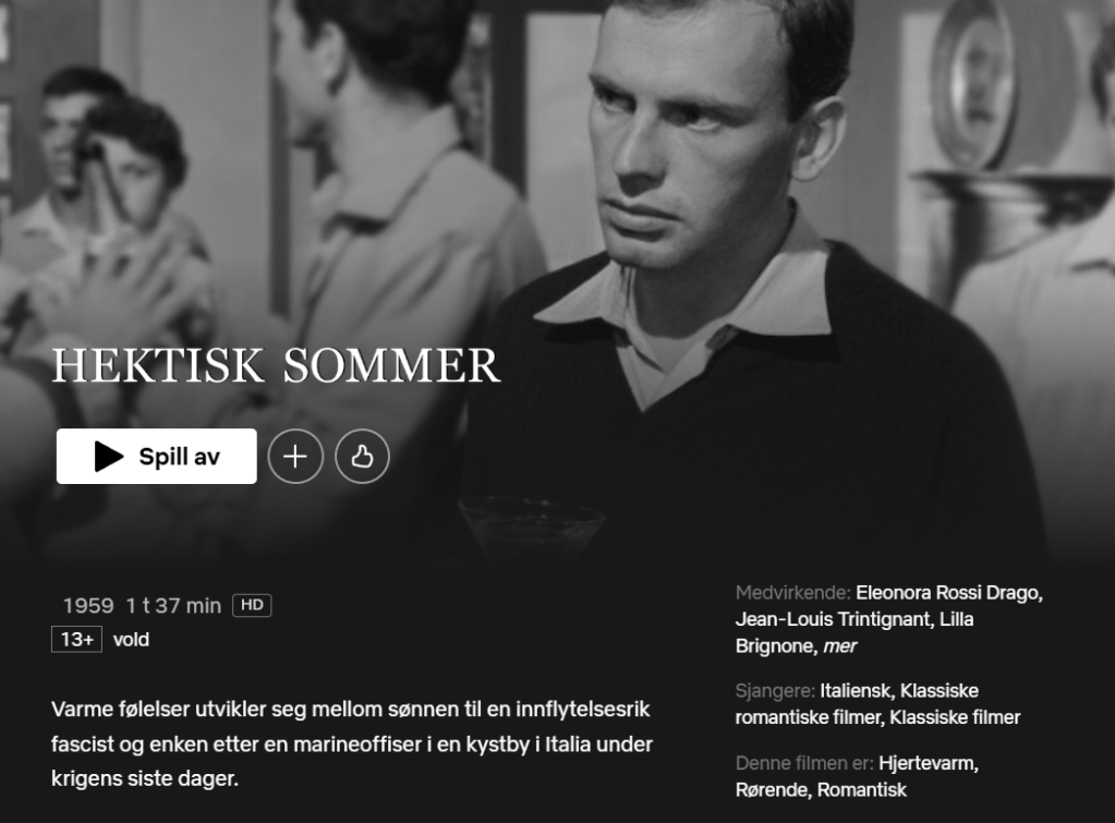 Det kan være vrient å manøvrere i Netflix-jungelen, en digitalisert lokasjon som ved første øyekast kan virke gjengrodd av titler man enten har sett før, eller som opplagt er så middelmådig at man unngår å klikke på dem. Men det er samtidig litt underkommunisert at den samme jungelen faktisk inneholder noen filmskatter verdt å grave frem. Av de store strømmetjenestene, er det nemlig den mektigste av dem i Netflix som skjuler de mest spennende bidragene fra særlig europeisk filmhistorie, og gjerne også litt på siden av de mest opplagte klassikerne.