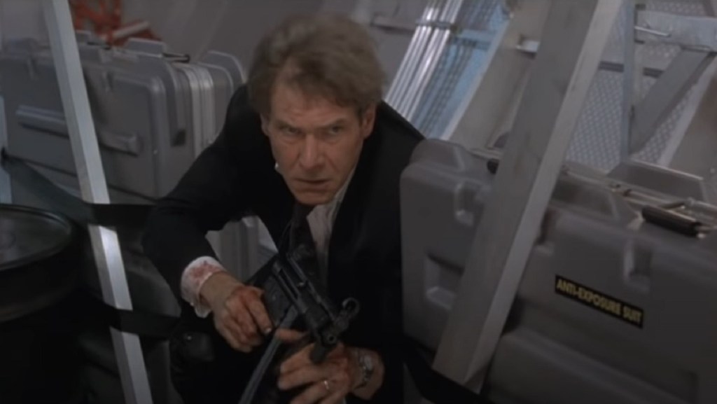 Det er definitivt spor av «Die Hard» i «Air Force One», og Harrison Ford evner å fungere som blanding av actionhelt og gjennomført populær president. Selv om filmen aldri går i dybden på noe som helst, så lærer vi å se presidenten som usedvanlig strategisk og smart, utstyrt både med de riktige prinsippene og verdiene, en god familiefar og elskverdig mann, kjekk og vital, og med handlekraft som til de grader også kommer fysisk til uttrykk. Det skader heller ikke at han er Vietnam-veteran og kan behandle både våpen og fly.
