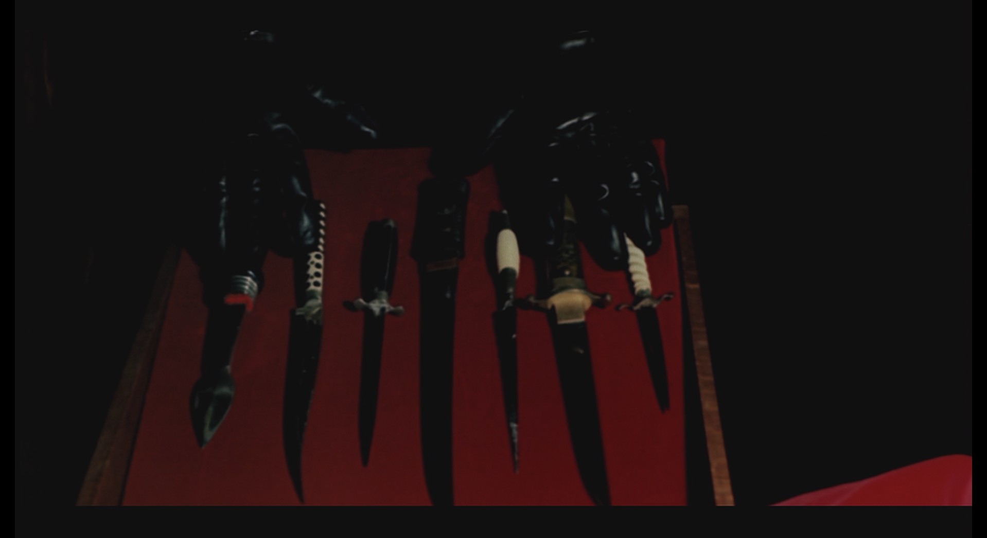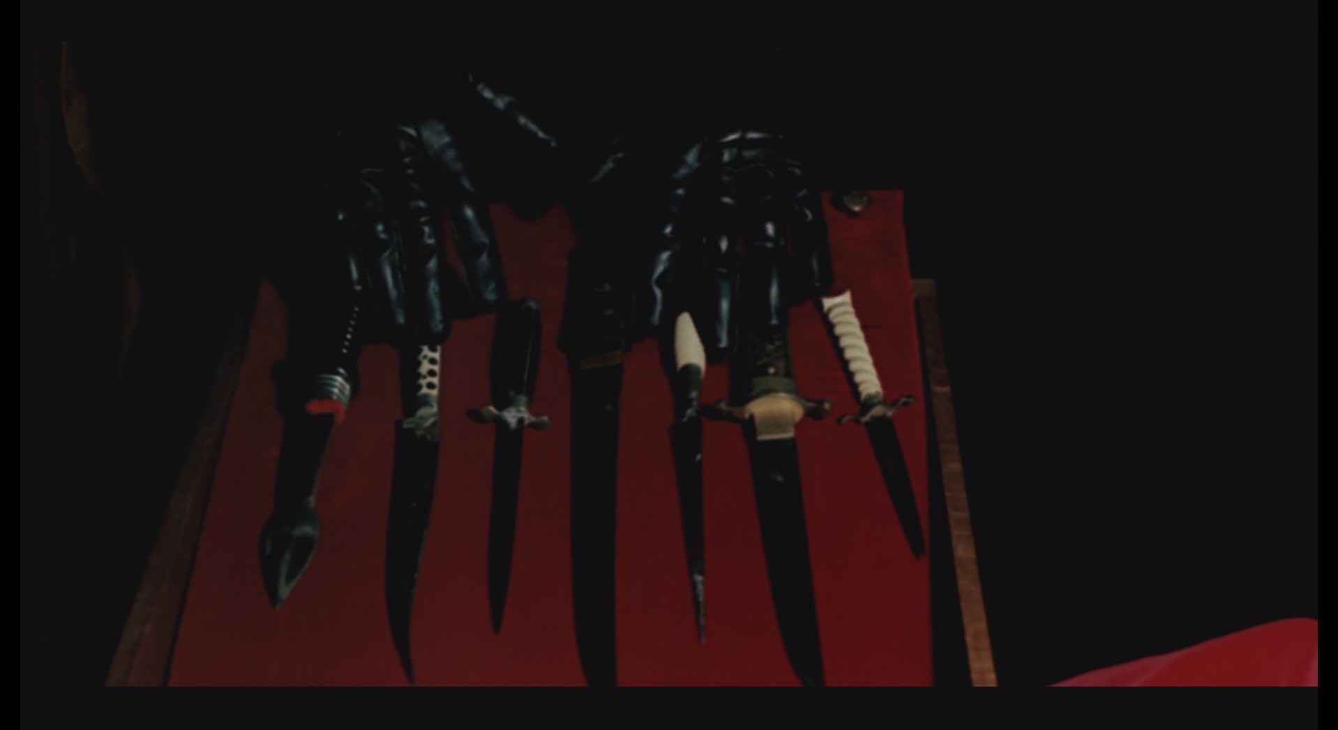 Dette er også et utsnitt helt fra filmens åpning, noe som igjen viser frem det karakteristiske i Dario Argento med en slags fetisjering over svarte hansker, kniver og ikke minst rødfargen. På venstre side er det skjermbilde fra Arrow-utgivelsen, mens høyre side er den norske sone B-utgivelsen.