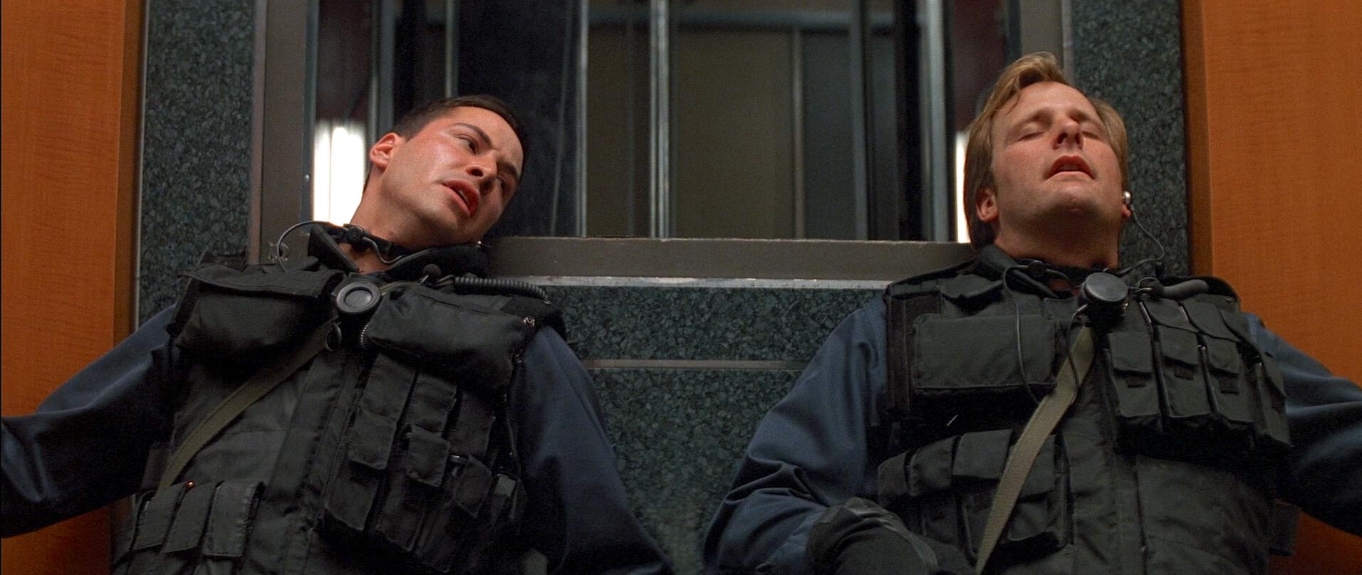Når man tenker tilbake på «Speed», er det bussen alt handler om, den bussen som vil eksplodere hvis hastigheten senkes til under 80 km/t. Men da har man samtidig glemt at vi umiddelbart, og lenge før vi stiger om bord i bussen, får servert en overraskende lang og intens sekvens hvor samme terrorist har plassert en bombe over en heis full av mennesker som blir intetanende gisler. Dette er selvfølgelig tilsiktet som et effektivt set up med en in medias res-presentasjon av hovedperson og miljø. Men realiteten er at regissør Jan De Bont lar sekvensen få spille seg ut med samme form for intensitet som filmen skal bringe med seg over i bussen, og som den aldri mister på veien.