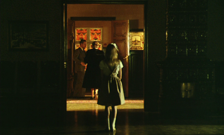 Hele tiden ser vi en rødkledd Eva sittende i bakgrunn bak et skrivebord. Vi ser et fotografi på bordet av et barn, og vi ser at hun skriver et brev. Hun reiser seg og går mot mannen og kamera. Hun har skrevet et brev til moren og inviterer henne til deres hjem.