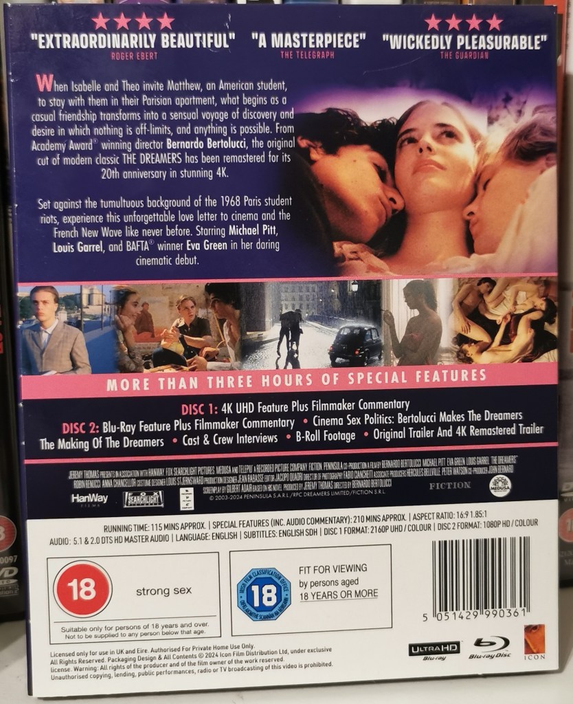 Hvilken status har egentlig «The Dreamers» av Bernardo Bertolucci? Inntrykket er at den har vært på en lang reise mot gradvis økende anerkjennelse, men at det fremdeles gjenstår et stykke til at den bredt omfavnes som mesterregissørens siste faktiske mesterverk. Og fra en som ved første øyeblikk fikk veldig varme følelser for filmen, kan det bekreftes at de overhodet ikke har gått tapt. I løpet av våren 2024 ble «The Dreamers» lansert i en splitter ny 4K-utgivelse, og det var aldri noen tvil om at den snart måtte anskaffes.