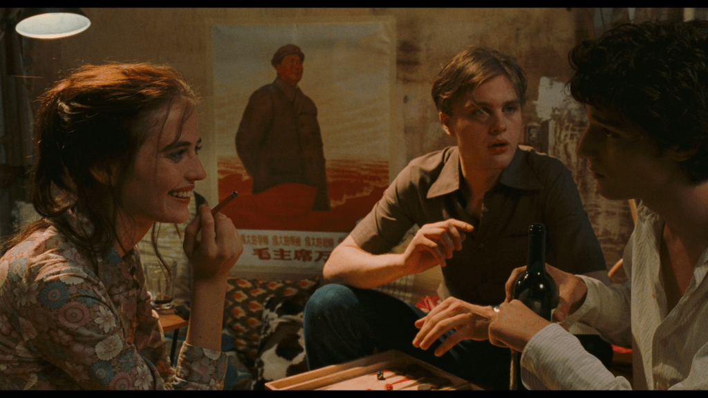 Jeg så, og elsket umiddelbart, «The Dreamers» da den kom i 2003. Jeg var da omtrent på samme alder som de tre karakterene i filmen, og vil anta at fascinasjonen dels handlet om en slags misunnelse eller ønske om å kunne leve i fragmenter av livene til Theo, Isabelle og Matthew. De er tre unge, i begynnelsen av tjueårene, som lever for film i filmens europeiske hovedstad, Paris. Og ikke minst: De puster og lever film og kjærlighet samtidig som omveltende studentopprørene finner sted rundt dem i 1968.