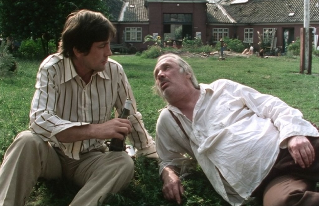 Svein Scharffenberg er mannen bak smerten i ansiktet og det tomme blikket. «Faen ta deg, din kødd», svarer kona (spilt av Anne Marie Ottesen) på telefon når Mogensen ringer hjem fra jobbturen til København. Hun merker gjennom røret at han har sprukket igjen, selv når han hardnakket benekter det. Hun legger på, og kamera zoomer inn på ham. Skamfull, sint og selvgranskende.
