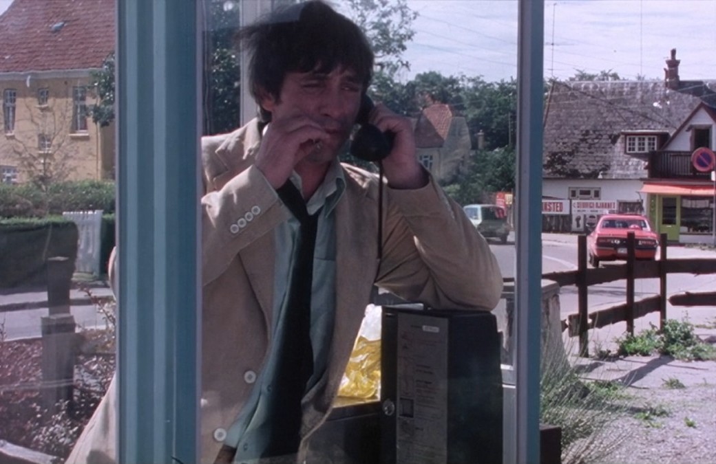 Svein Scharffenberg er mannen bak smerten i ansiktet og det tomme blikket. «Faen ta deg, din kødd», svarer kona (spilt av Anne Marie Ottesen) på telefon når Mogensen ringer hjem fra jobbturen til København. Hun merker gjennom røret at han har sprukket igjen, selv når han hardnakket benekter det. Hun legger på, og kamera zoomer inn på ham. Skamfull, sint og selvgranskende.