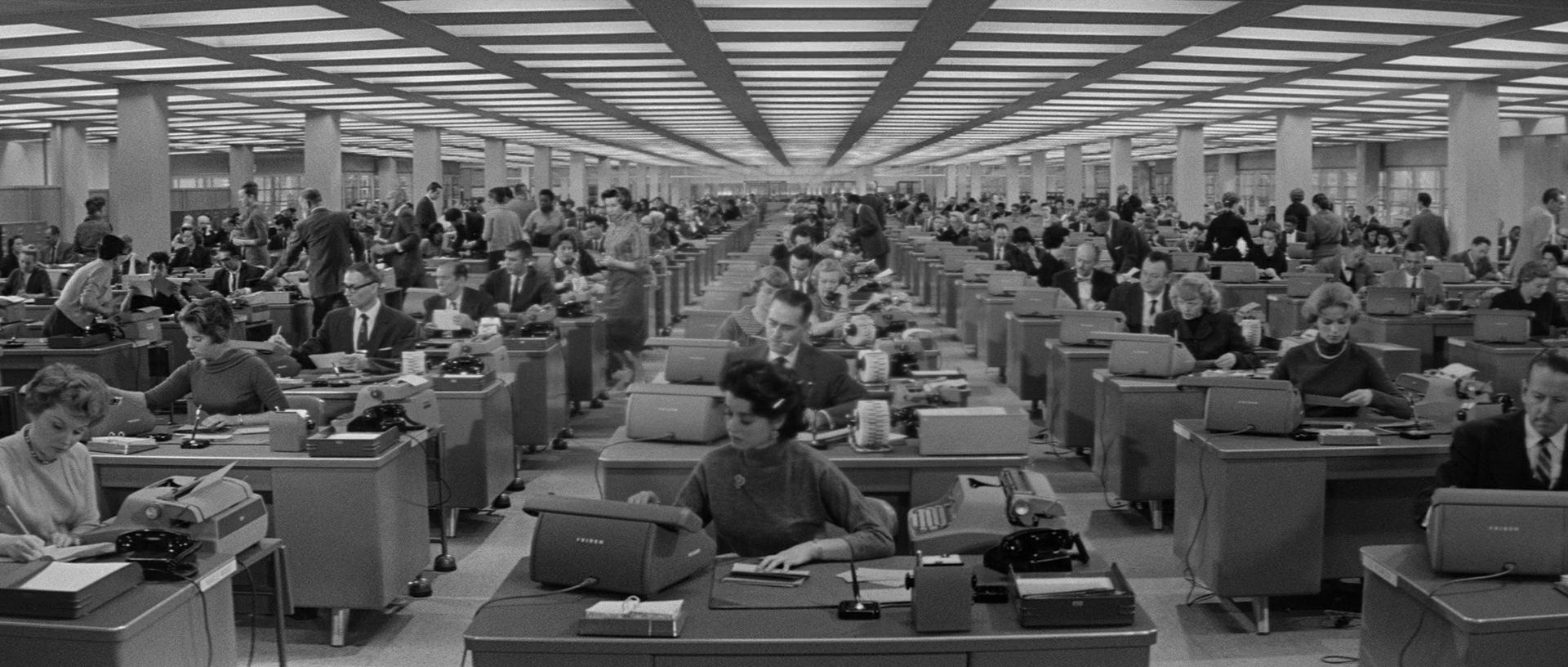 Filmisk er «The Apartment» en studie i økonomisk eleganse. Ernest Laszlos sort-hvitt-fotografi understreker kontorlandskapets anonymitet og leilighetens klaustrofobi. Wilder bruker rom og avstand bevisst – som når Bud sitter alene i en tilsynelatende uendelig rekke av pultrekker i kontorlandskapet, og Wilder kun med bildets makt forteller oss mer enn ord kunne ha gjort om karakterens ubetydelige plass i det store systemet. Til slutt er det likevel filmens rytme som imponerer meg aller mest, noe som gjerne skapes av en presis og «usynlig» form for klipping; det føles som historien får flyte uten motstand. «The Apartment» beveger seg som i en dans fanget av sitt eget tempo. Her er ikke én scene overflødig, for kort eller for lang. Alt henger sammen, både som håndverk, men også som filmisk kunst.