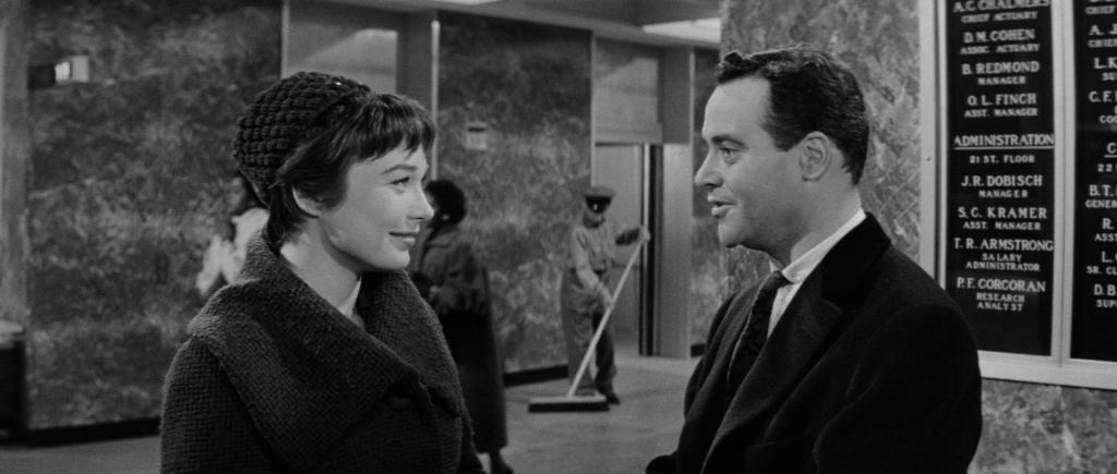 I hovedrollen viser Jack Lemmon en god blanding av barnlig sjarm og patetisk lojalitet som Bud, mannen som er på desperat jakt etter å finne sin plass i systemet. Men til hvilken pris? Lemmon finner en vei både til karakterens sårbarhet og komiske tilsnitt med finkalibrert timing for de vanskelige toneskiftene. Vi liker ham på tross av alle hans dårlige valg, eller kanskje fordi han viser en menneskelighet i feilvalgene, i hvordan han kan virke ettergivende, redd og konfliktsky – samtidig som han vil opp og frem. Lemmons spill er veldig lite bombatisk, men kommer med herlige nyanser i kroppsspråk og uttrykk. Samtidig varmes Lemmon opp av et ektefølt samspill med en nøktern og fin Shirley MacLaine.