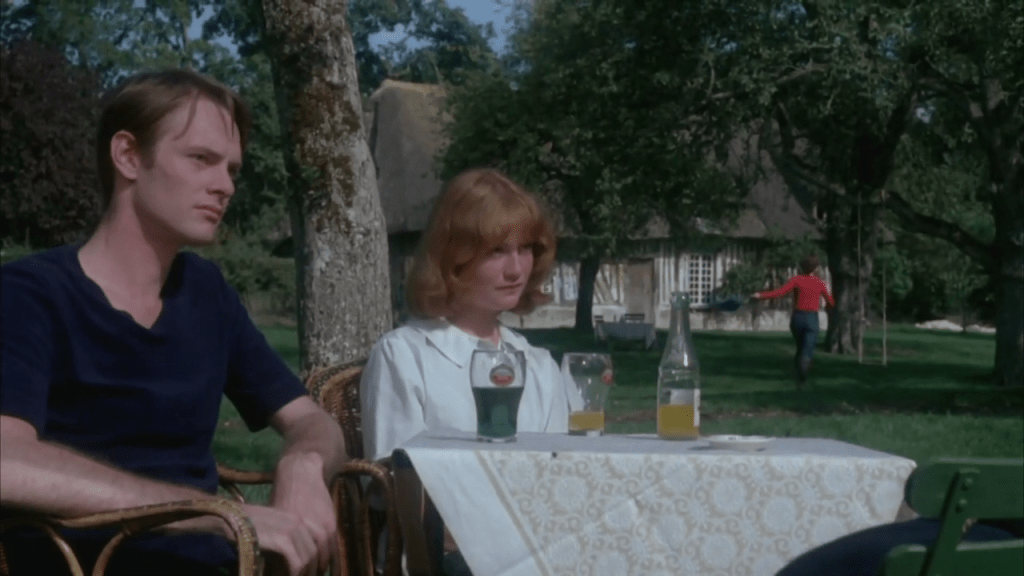 Huppert gjør Pomme til en gåte, men av den typen som vi ikke nødvendigvis skal løse. Hun sier lite, men filmen (og skuespilleren) lar oss merke at det likevel skjer noe i henne hele tiden. Det er små forskyvninger, og det er en tidlig demonstrasjon i stor skuespillerkunst fra kvinnen som utviklet seg til å bli kanskje tidenes franske kvinnelige skuespiller.