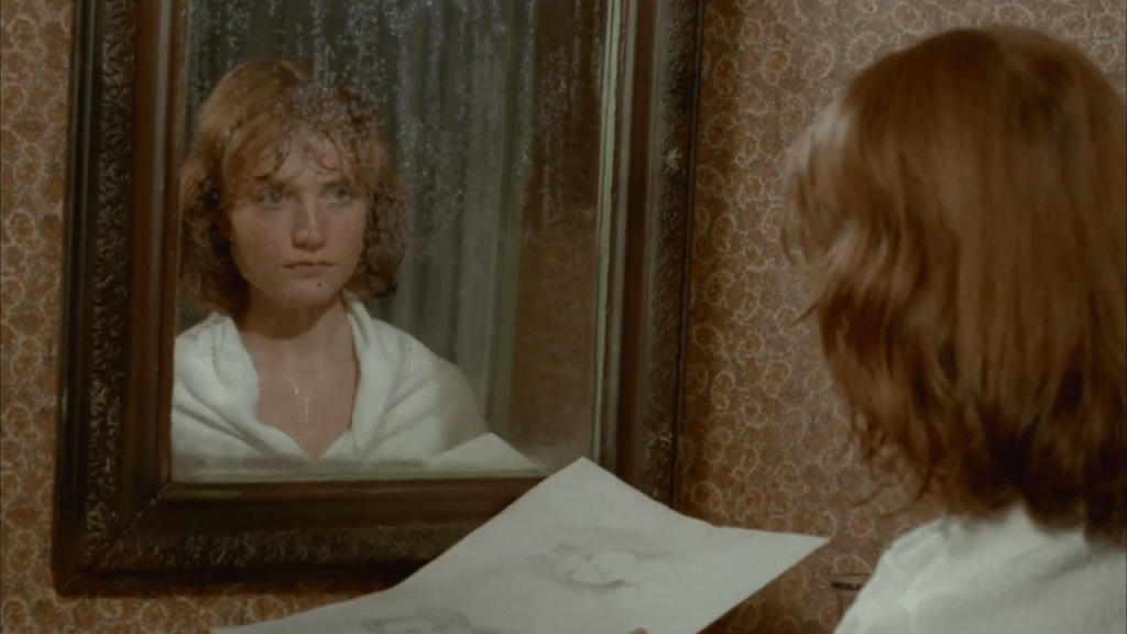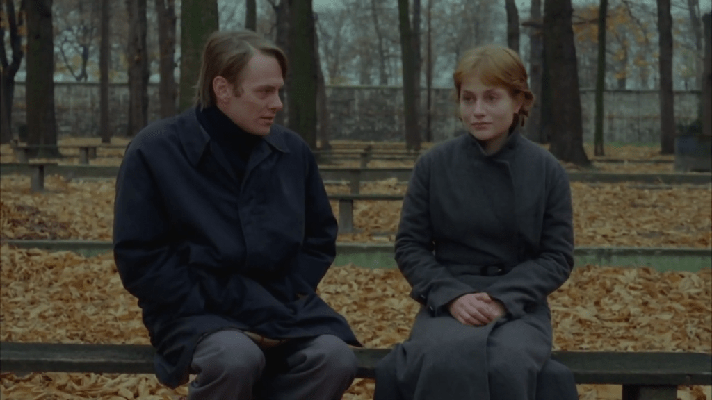 Mot slutten streifet også tankene mine innom Joachim Trier med hans Oslo, 31. august og Verdens verste menneske. Ikke fordi uttrykket nødvendigvis er veldig likt, men fordi Goretta i likhet med Trier er opptatt av det uuttalte i hvordan melankolien får sive inn i bildene. Men også fordi det er konkrete iscenesettelser som vekker assosisasjonen – og fordi det er kjent at Trier er spesielt begeistret for Huppert, er det kanskje ikke helt utenkelig at han ubevisst har hentet elementer fra La Dentellière?