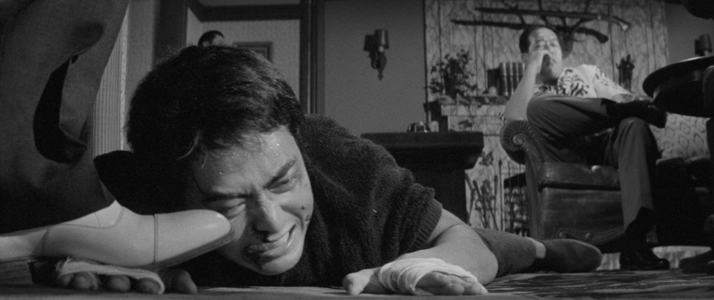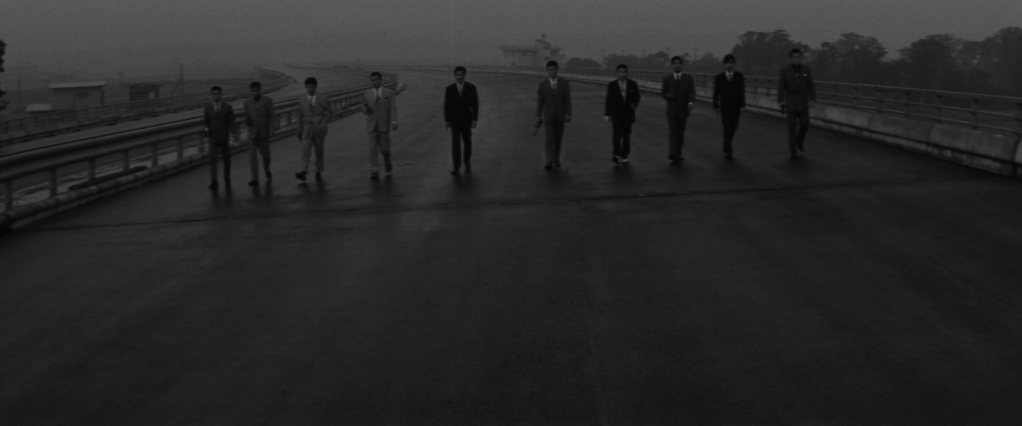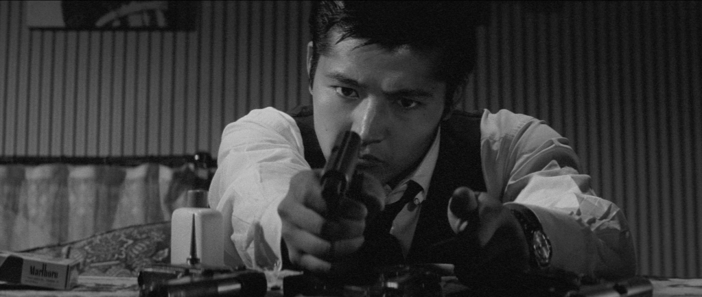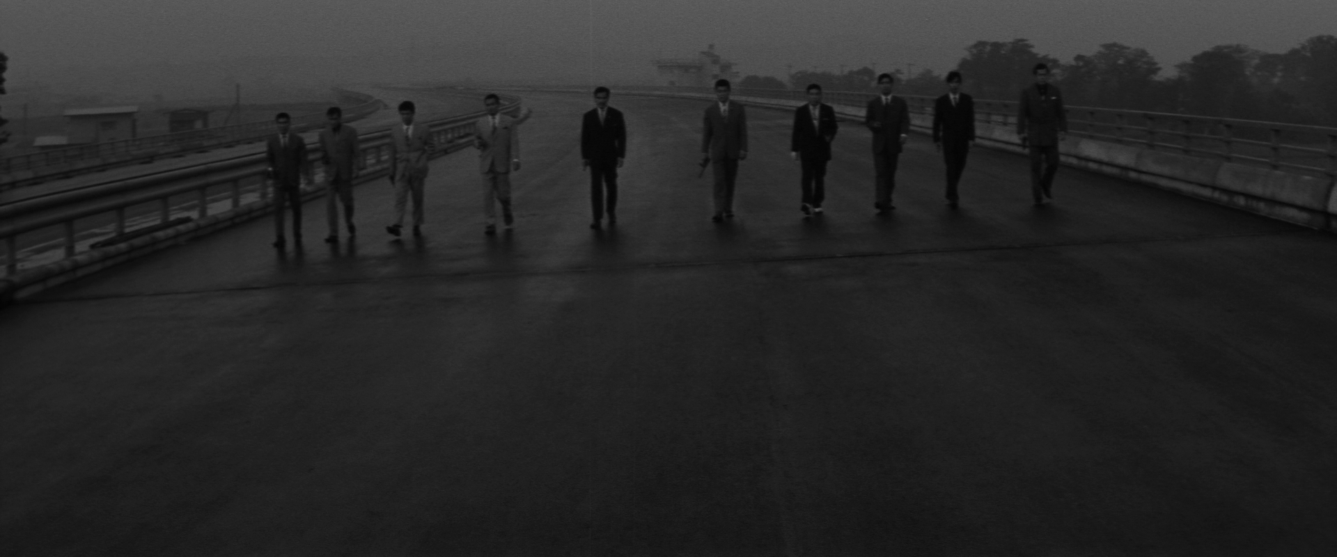 Koblingen til Suzuki understrekes også av tilstedeværelsen til ikoniske Joe Shishido (Branded to Kill, Youth of the Beast). Med sine karakteristiske kinnbein og magnetiske utstråling, var han en av Japans mest ikoniske skuespillere innen yakuza- og exploitation-sjangeren på 1960-tallet, og han tilfører her en ekstra dimensjon av tøffhet og sjarm til hovedkarakteren. I åpningen ser vi ham likvidere kvinnen han er sammen med, og filmen understreker aktivt at kjærligheten aldri er viktigst for disse yakuza-mennene. Mot slutten velger en av de tre brødrene å ofre kvinnen han deler seng med for sitt eget liv når en pistol pekes mot ham. Men Hasebe dveler ikke for lenge ved det, og heller ikke med den underliggende tematiseringen av lojalitet og brorskap som forløses mot slutten. Hasebe er desto mer interessert i hvordan kamera kan posisjoneres i komposisjoner av skarpe svart-hvitt-bilder (igjen som Suzuki), som samtidig kan pustes røykfulle av jazzklubbstemning og kruttrøyk.