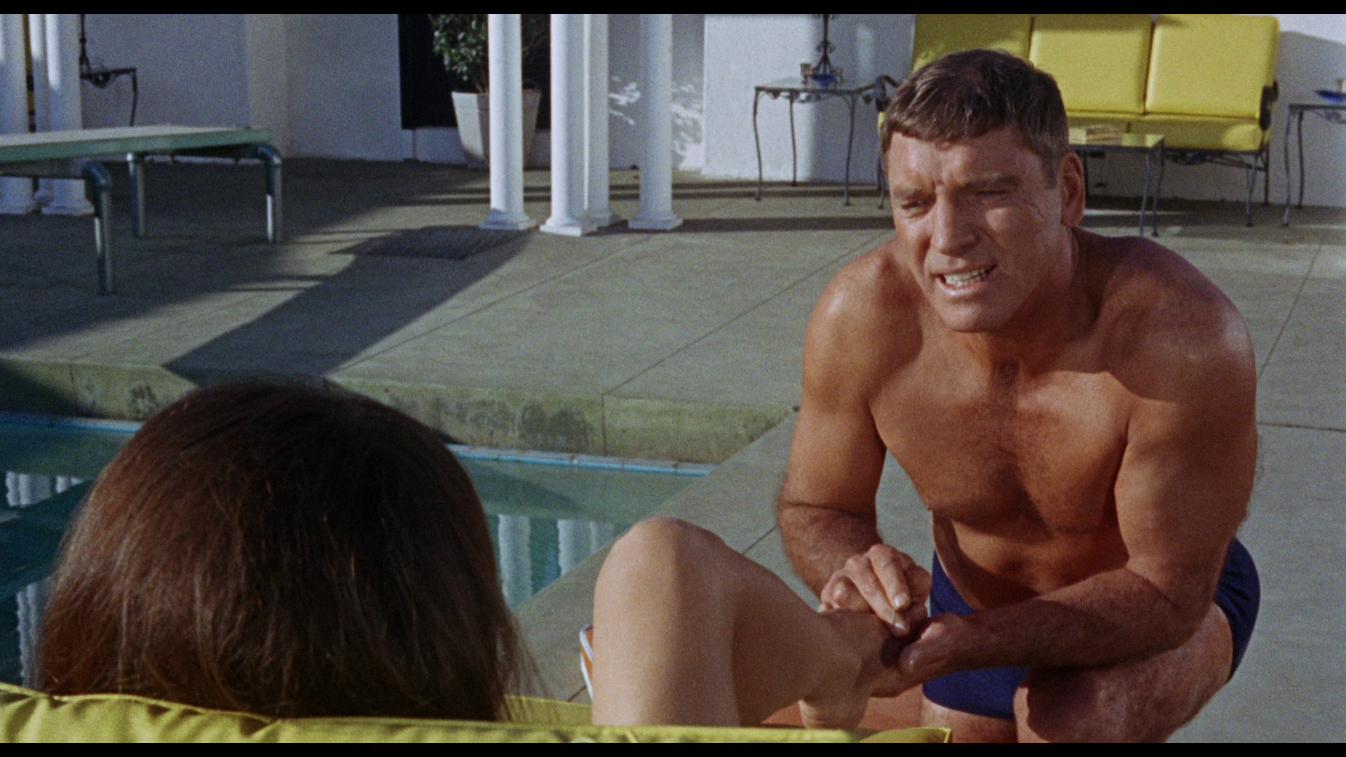 The Swimmer er en forunderlig skildring av en mann som bestemmer seg for å svømme hjem gjennom naboenes bassenger. Som filmfortelling er det utpreget visuelt og dypt symbolsk, drømmeaktig og ikke minst urovekkende – om tid, tap og selvbedrag.