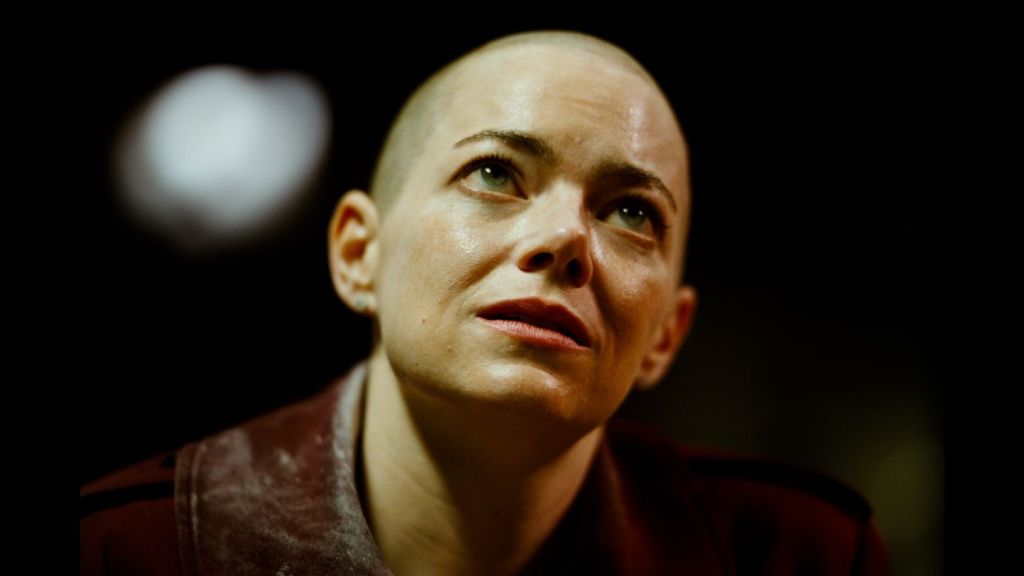 Det er nærliggende å beskrive Bugonia som veldig «lanthimosk». I hvert fall er det en film med brodd, selv om den verken i format strekker seg mot Poor Things, men som heller ikke lukker seg kveldende inn som Dogtooth. Men filmen henter næring fra begge disse mørke landskapene som grekeren behersker så godt, som premiss for noe foruroligende om menneskeheten; det er smart og snedig fortalt, men også formidlet i kollisjoner av det poetiske, brutale og absurde. Kanskje kunne Lanthimos med noen mer klassiske grep økt spenningsmomentene ørlite, men Bugonia lever og puster på egen måte. Og totalbildet er en fremragende skrevet, spilt og iscenesatt. Den er uforutsigbar, dyster, fengslende og innimellom rasende morsom, som et slags speilbilde eller vrangbilde av den syke tiden og verdenen vi lever i.