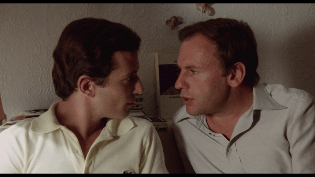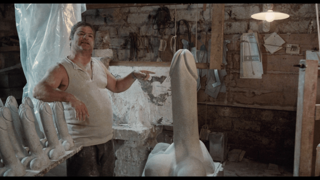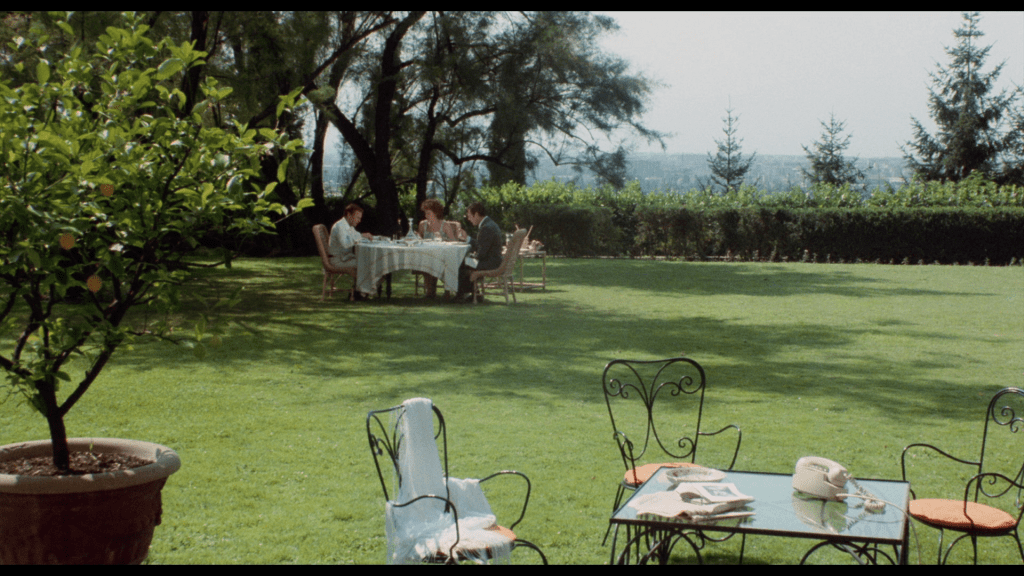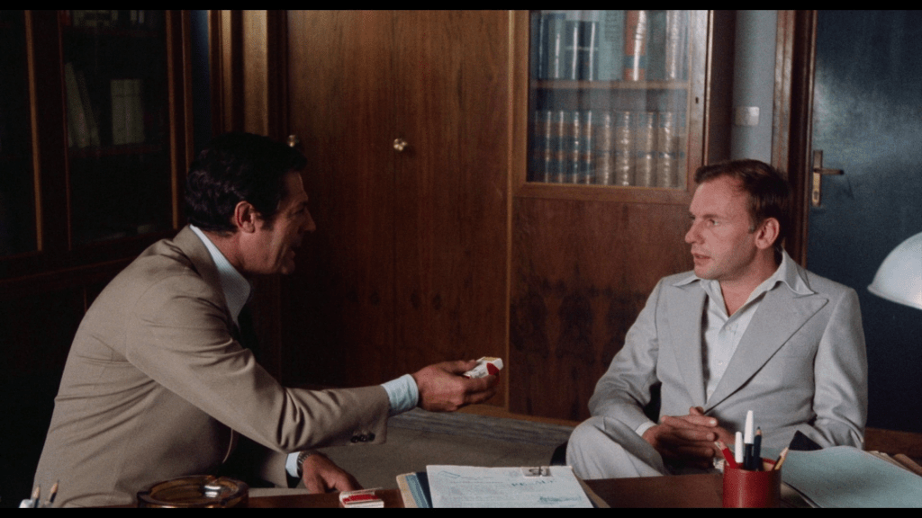Fra det auditive til det visuelle, gir fotograf Luciano Tovoli et kompetent uttrykk i kjølige toner med sterile kulisser. Det er funksjonelt og tidvis vakkert i lyssetting og kameraføringer, men det er milevis unna den visuelle verden som Tovoli er mest berømt for å ha skapt for Dario Argento på hans Suspiria. Jeg så selv The Sunday Woman på Radiance Films’ Blu-ray-utgivelse, som gir tilgang til begge de relevante bildeformatene: Det originale 1.33:1 (som produsentene ønsket inkludert) og det bredere 1.85:1 (som Tovoli filmet med i tankene). Filmen ser for all del flott ut med sterkt balanserte bilder i 1.85:1-versjonen, men visuelt er den innimellom likevel ikke helt fri for et flatt og tv-aktig preg. Når jeg tidligere trakk linjer til både Woody Allen og Pedro Almodóvar, er The Sunday Woman mindre estetisk og visuell saftig enn i de bedre komposisjonene fra Allen og Almodóvar.