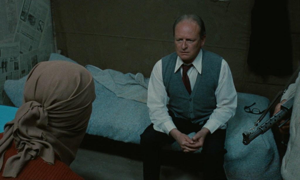 Et av Costa-Gavras’ modigste og mest interessante valg er å åpne filmen med funnet av Santores lik i en bil – og dermed avliver han samtidig den mest åpenbare kilden til suspense allerede fra starten. Costa-Gavras er ikke interessert i å gjøre det til en konvensjonell kidnappingsthriller ved å la spenningen drives av publikums håp om redning. Isteden inviteres vi her til å fokusere på hvordan og hvorfor. På den måten tvinges publikum inn i en mer analytisk, men ikke mindre emosjonell, posisjon. Vi vet at utfallet er tragisk, og scenene utspilles som en serie nødvendige steg mot et på forhånd låst endepunkt. Samtidig forsterker dette også den moralske friksjonen mot slutten, som er at medlemmer av Tupamaros stemmer over om Santore skal henrettes eller ikke. Avstemningen, gjennomført som en nøktern, nesten administrativ prosedyre, legger seg også langs det ubehagelige stedet mellom demokratisk rituale og legitimering av drap. Men går Costa-Gavras her for langt i å legitimere henrettelsen ved å vise den demokratiske prosedyren snarere enn selve handlingen? Når det uansett ikke oppleves som problematisk handler det om Costa-Gavras’ presisjonssterke filmatiske presentasjon av opptakten.