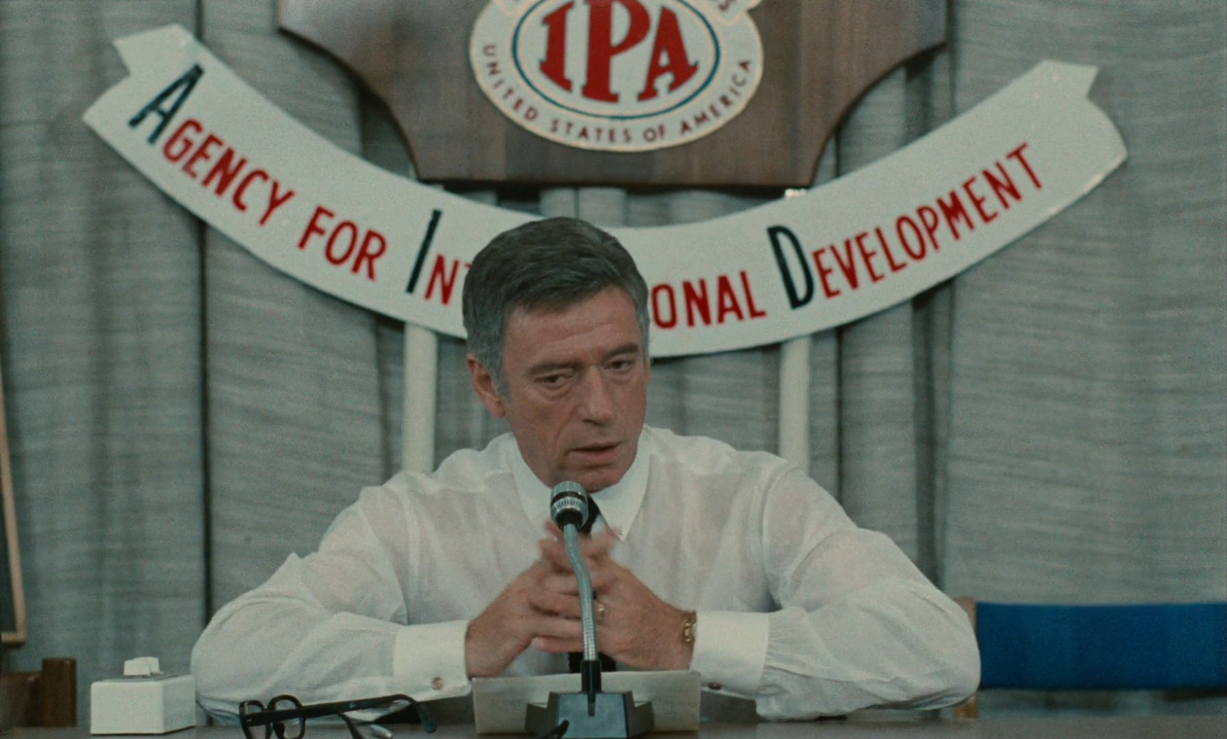 Det er Yves Montand som bekler rollen som Santore – en amerikansk rådgiver spilt av en europeisk stjerne, noe som i seg selv understreker figurens konstruerte karakter. Han er ikke en psykologisk dybdefigur i tradisjonell forstand, men et ansikt for en praksis av profesjonalitet og høflighet. Han er en urovekkende, glatt teknokrat som representerer en «rasjonell» administrasjon av vold – og Montand spiller ham uten demonisering, men med en viss varme. Rundt ham blander Costa-Gavras det semi-dokumentariske – møterom, kontorer, gateplan – med mer klassisk suspense. For State of Siege er også ladet med sin andel flukter, skjulesteder, politiaksjoner og tidsfrister som samlet skaper nerve og driv. Dermed demonstrerer også Costa-Gavras at han samtidig behersker thrillersjangerens mekanikk fullt ut, noe han også senere skulle utnytte seg av i Hollywood-produksjoner. Her settes imidlertid spenningen konsekvent inn i hva som skal tydeliggjøre strukturer og konsekvenser, ikke bare for å gi ren adrenalin.