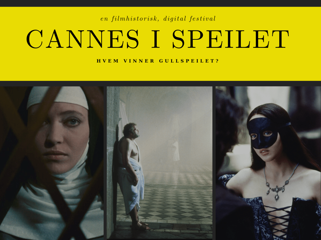 Gjennom april arrangerer Speilet derfor Cannes i Speilet – en personlig, digital festival bestående av 16 filmer som alle har deltatt i hovedkonkurransen i Cannes mellom 1950- og 2010-tallet. Filmene representerer ulike epoker, tradisjoner og nasjonale filmkulturer, og vises her samlet som et lite tverrsnitt av festivalens historie.